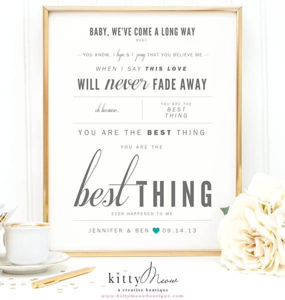 Gray & Teal, Ray LaMontagne "You Are The Best Thing" - Valentine's, Wedding Gift, Paper Anniversary Gift, Song Lyrics, Art Print