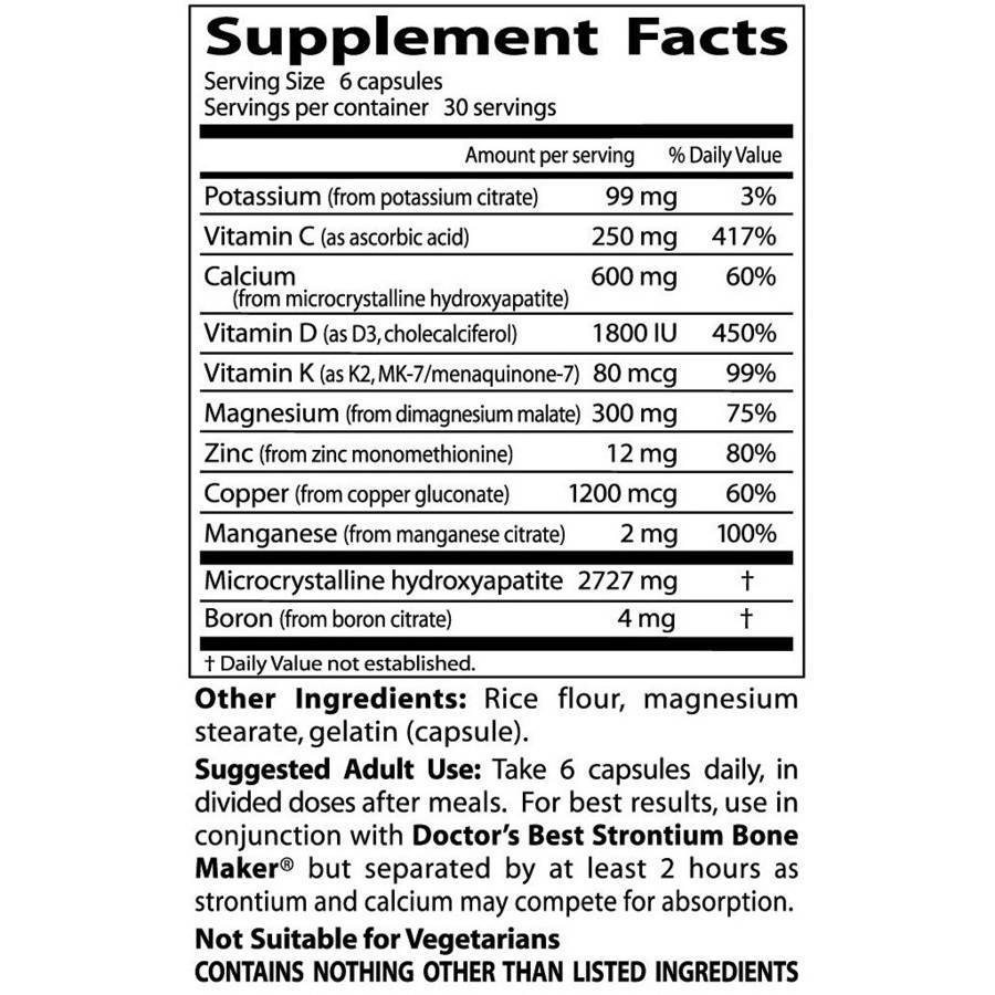 Doctor's Best Calcium Bone Maker Complex with MCHCal, Supports Bone ... 22/10/2009 · Doctor’s Best Calcium Bone Maker Complex promotes skeletal, muscular and overall health.* The Calcium Bone Maker Complex includes a spectrum of nutrients to promote healthy bone maintenance.* It includes calcium with vitamin D to effectively keep bones strong , as well as bioactive vitamin K2 (as MK-7) to assist bone calcium management. ...